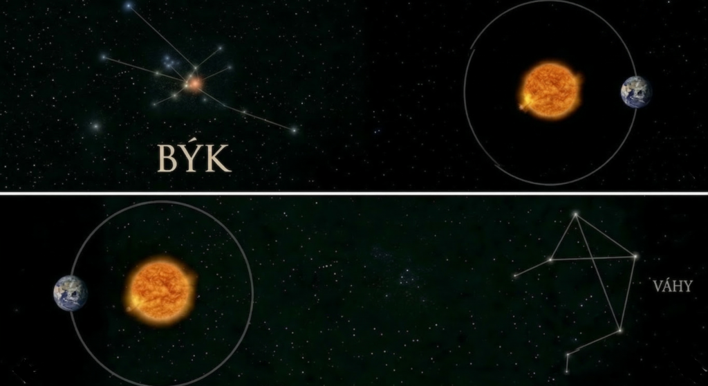 Můžeme se o tom přesvědčit například brzy ráno, pokud si přivstaneme a podíváme se na východ Slunce. Zjistíme, že se nad obzorem začíná objevovat právě v místě, kde zároveň na konci noci zapadá jedno ze zvířetníkových souhvězdí. A že během roku Slunce vychází v různých těchto souhvězdích.